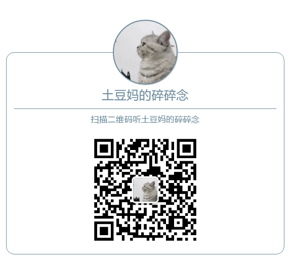 微信公众号:土豆妈的碎碎念(扫码关注,一起吸猫,一起听故事,一起学习前端技术)