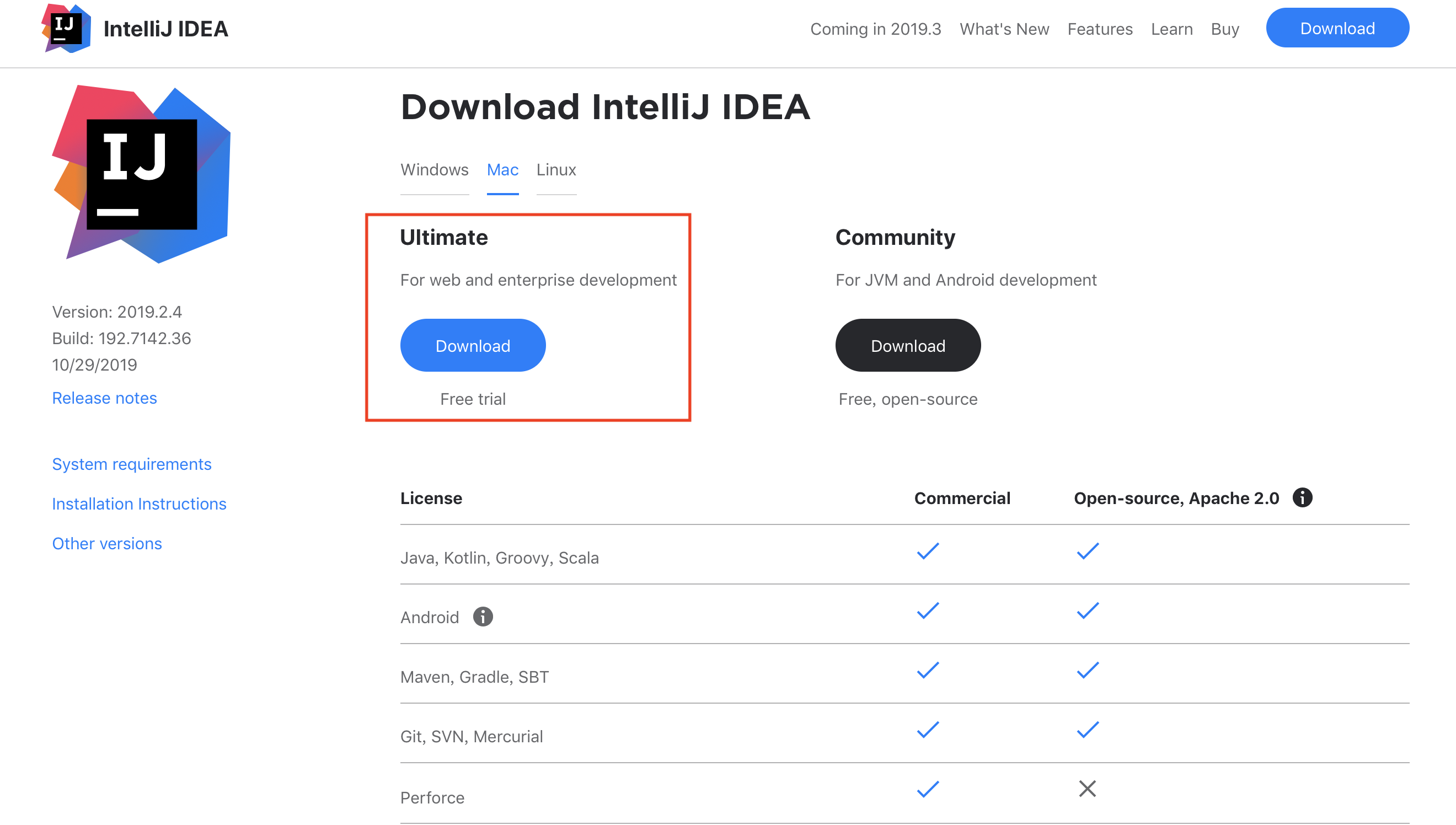 访问官网下载页面:http://www.jetbrains.com/idea/download/#section=mac