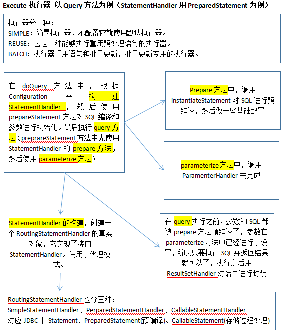 - StatementHandler:作用是使用数据库的Statement(例如PreparedStatement)执行操作,它很重要。