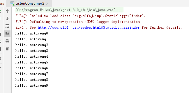 /** * 6.创建消息并且生产者发送消息到目的地 */ for(int num = 0; num < 10; num++){ TextMessage textMessage = session.createTextMessage(message + num); producer.send(textMessage); System.out.println("消息发送成功"+textMessage.getText()); } - 关键点来了,在消费者上加了一个监听器