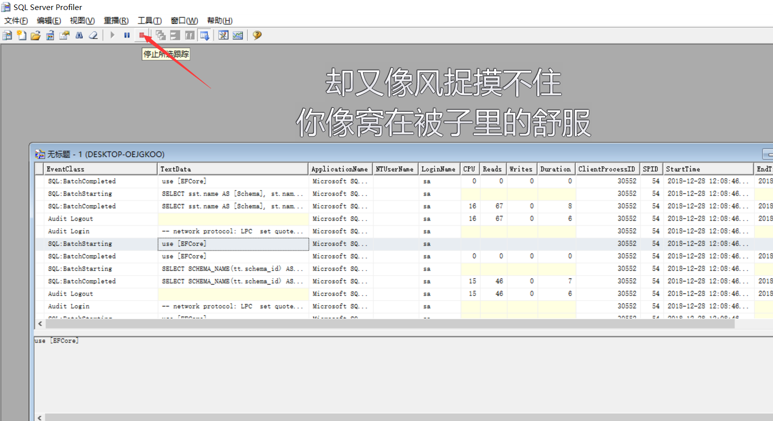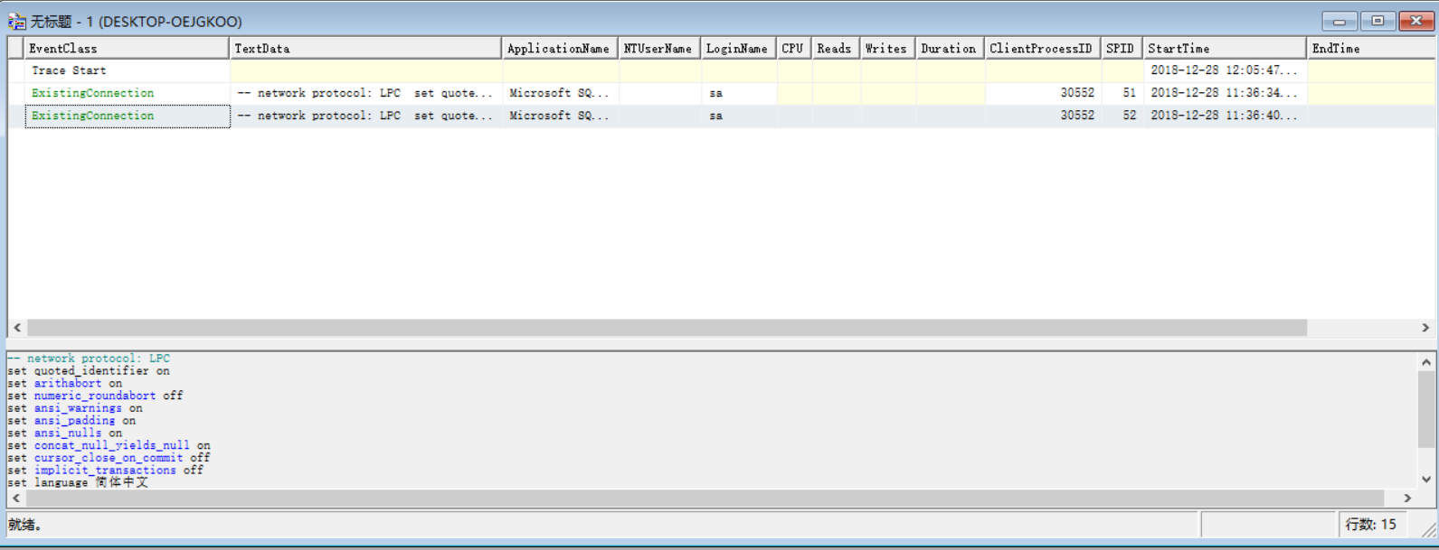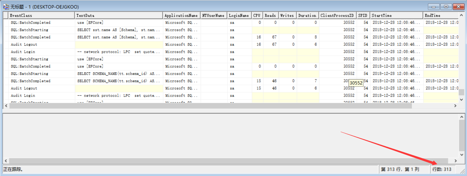 SQL profiler支持多连接跟踪,那么也就是可以分布式监控了,那么我们点击运行,就可以看到这样的可视化界面了。