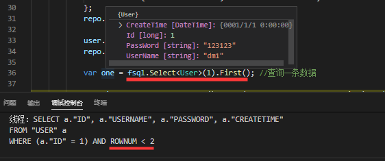 var one = fsql.Select<User>(1).First(); //查询一条数据