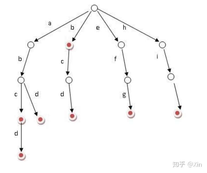 Trie 的核心思想是空间换时间,利用字符串的公共前缀来降低查询时间的开销达到提高效率的目的。