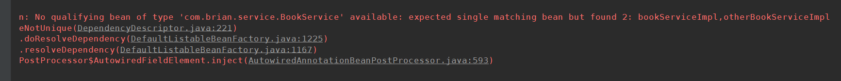 Indicates that a bean should be given preference when multiple candidates are qualified to autowire a single-valued dependency. If exactly one ‘primary’ bean exists among the candidates, it will be the autowired value. This annotation is semantically equivalent to the {@code} element’s {@code primary} attribute 不难看出如果用primary注解其中一个bean就要优先于其他的Bean,当然这个对于这种三方jar包最好不要添加的,谁知道它会不会后期又出什么幺蛾子,只能改自己的代码了最后的方案是改成@qualifiel(“getMetricRegistry”),选取了其中一个bean注入