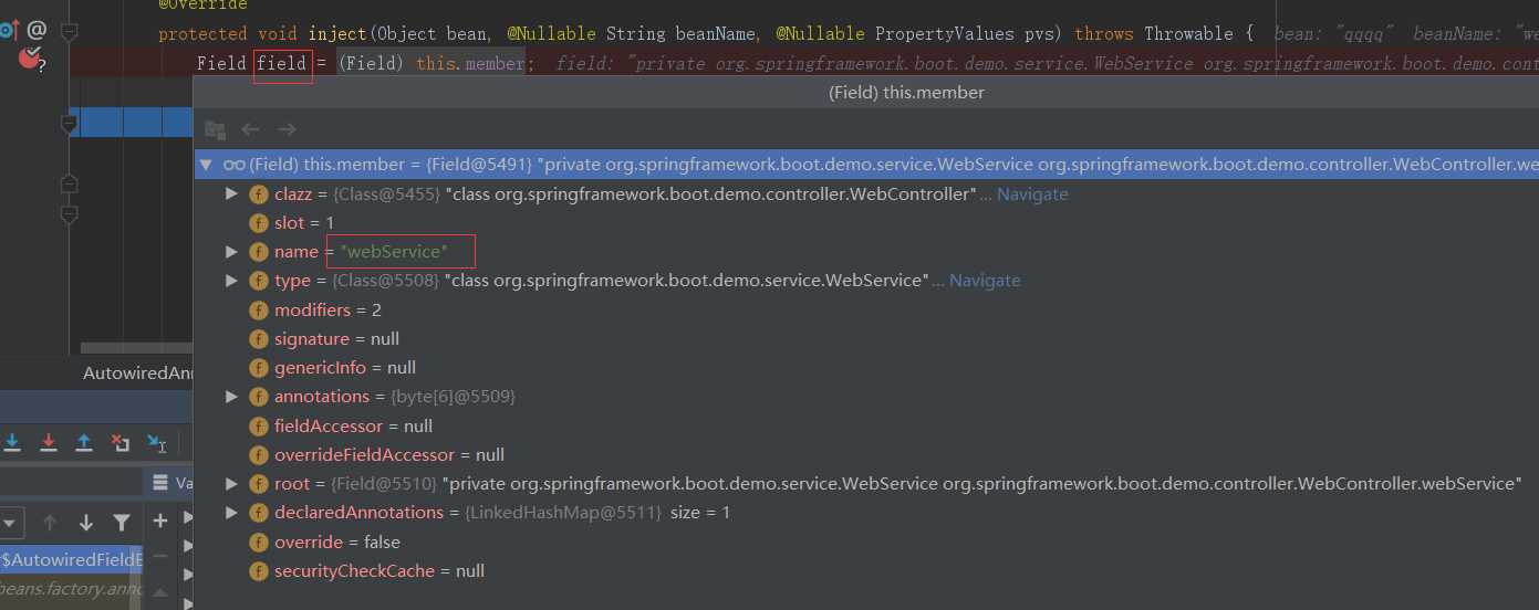 debug看一下field。如下图所示正是我们的webService