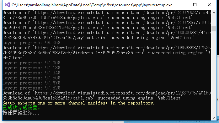 最后面一句是下载中文版本,然后打开命令提示符进入安装器的目录,然后输入指令开始下载: