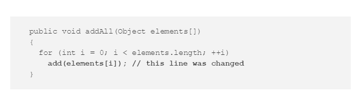 基类Array的add方法把一个元素添加到一个本地数组中。基类Array的addAll方法调用本地数组的add方法来把每个元素添加到数组中。