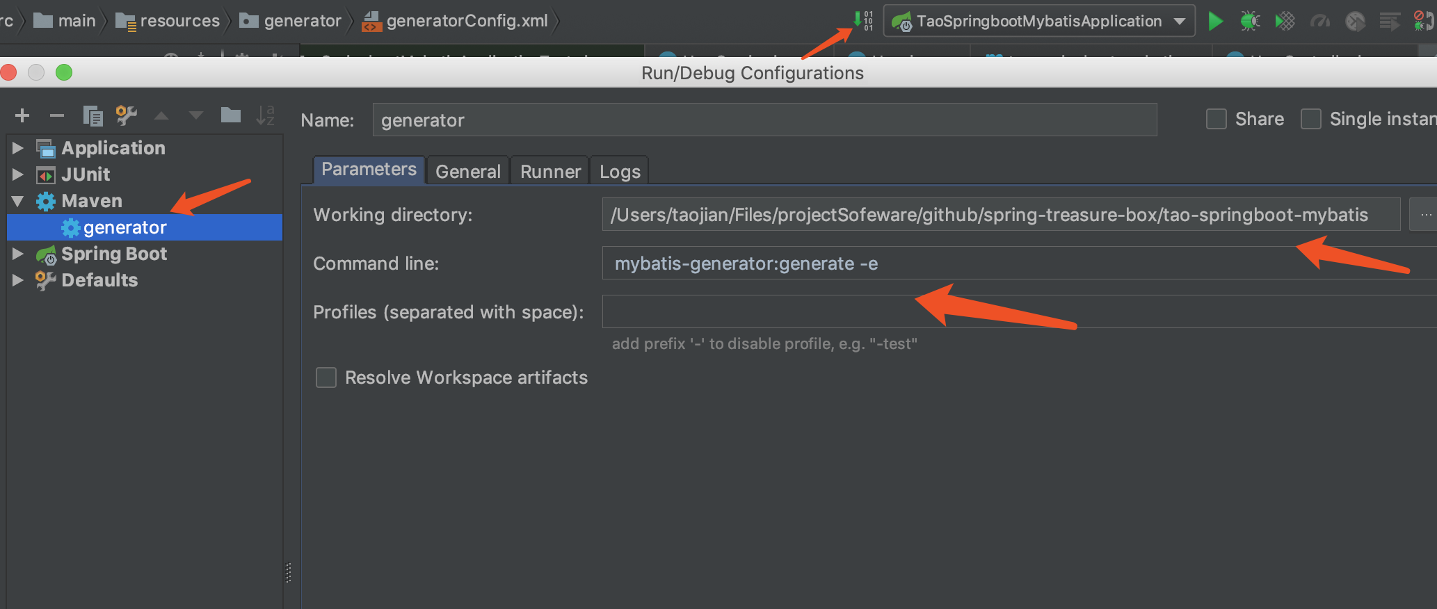 核心命令 :mybatis-generator:generate -e