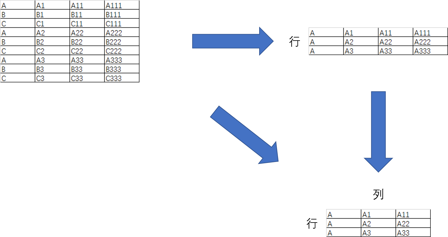 这里只是按照一维的方式进行拆分,和分组并没有实际上的区别,接下来我们看从二维的方向上对数据进行拆分: