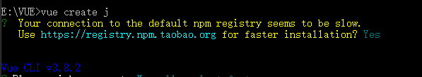 6.执行 vue create <项目名称>创建项目吧,我这里直接用j做测试好了