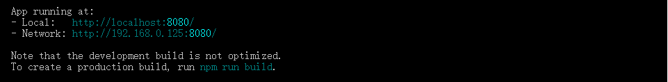 可以看到有两个地址,第一个是用于本地测试,第二个是用于局域网测试,复制其中一个到浏览器运行即可。