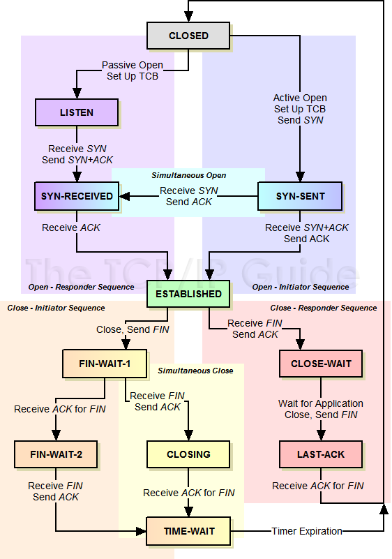 在这里为了讨论方便,假设主动关闭连接的一方均为本地客户端,被动关闭连接的一方均为服务端,以客户端与服务端 TCP 状态的变化来讨论。