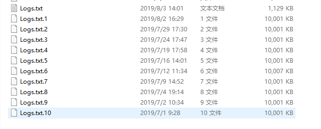 当一个文件达到了在Log4Net配置中设置好的文件大小上限时,在文件名后按照数字倒排后开始继续增加文件。