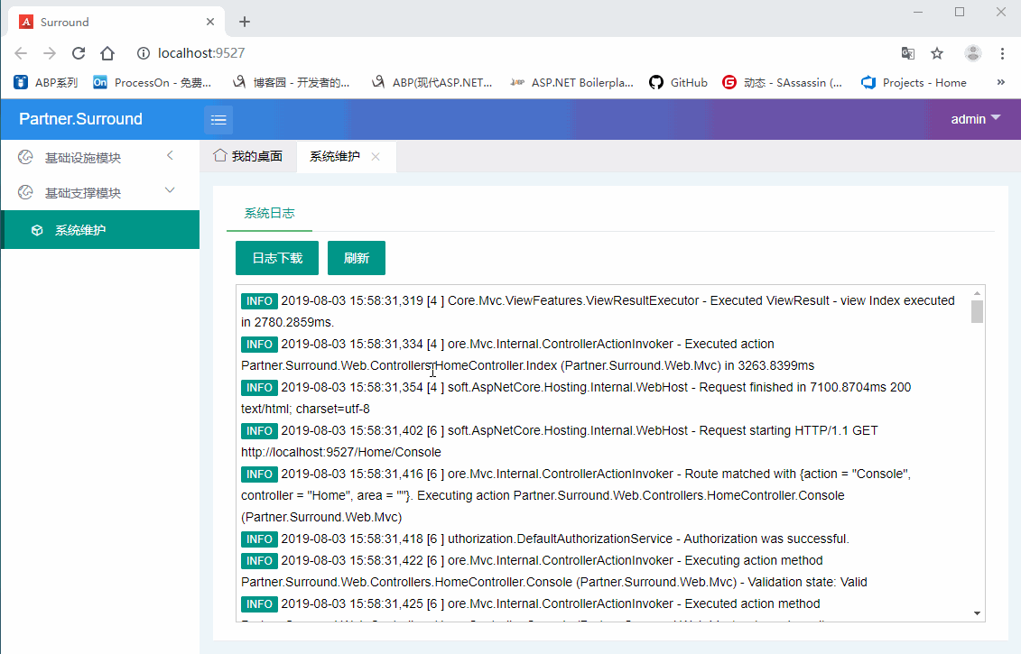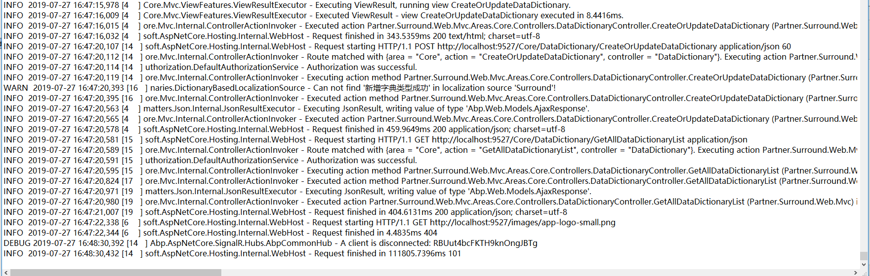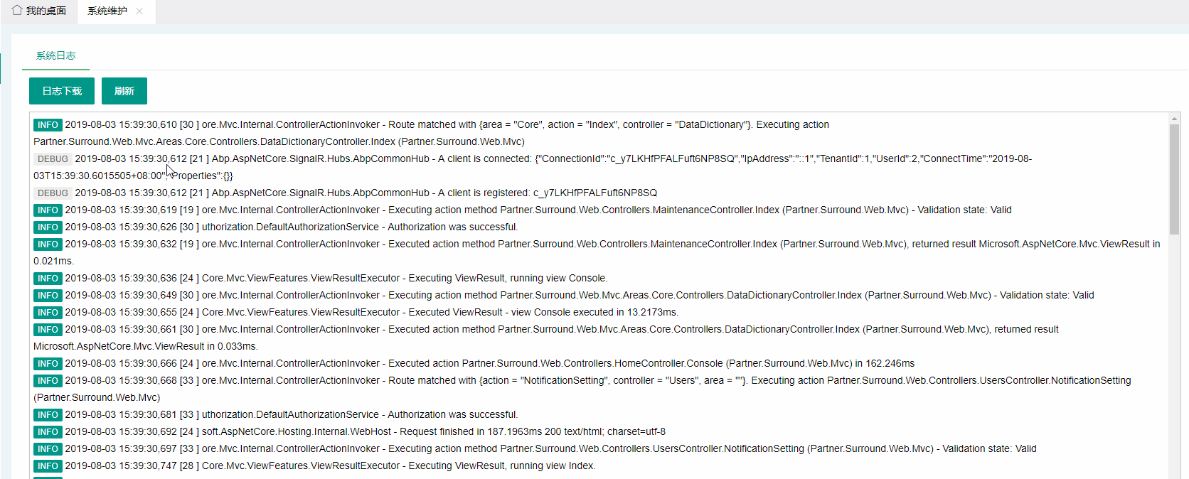 参考了AbpZero中的部分代码并根据实际需要进行整合,开始在页面中设计日志展示层。