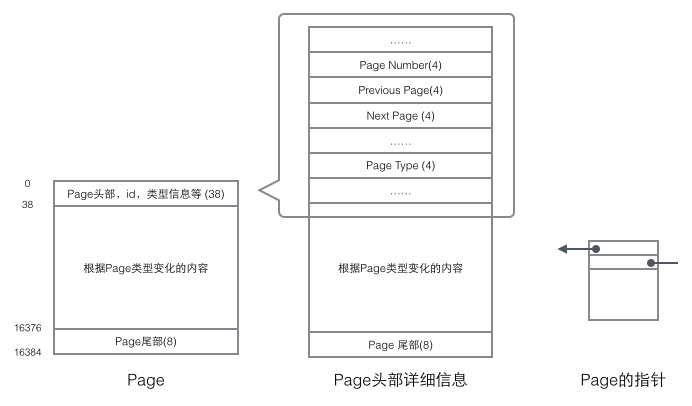 每个Page都有通用的头和尾,但是中部的内容根据Page的类型不同而发生变化。Page的头部里有我们关心的一些数据,下图把Page的头部详细信息显示出来: