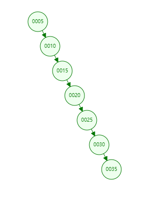 但是如果我们插入数据是有序的,如[5,10,15,20,30,25,35],那么结构就变成下面这样: