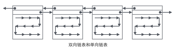 每个节点中有持有指向下一个节点的指针,只能按照一个方向遍历链表,结构如下: