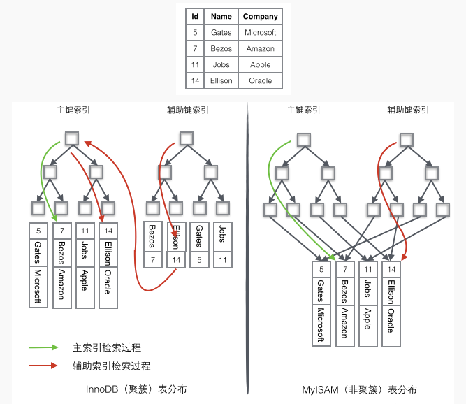 - 先在辅助索引中检索到name='Ellison'的数据,获取id为14