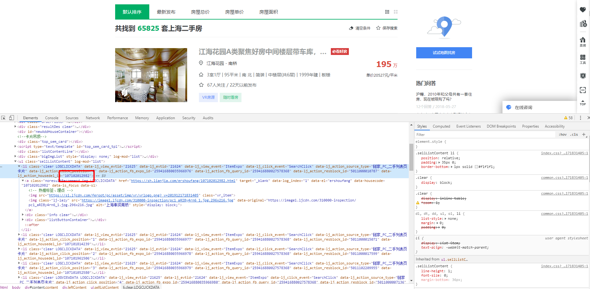 淡不多扯,先进入正题,目标页面的链接小编已经找好了:https://sh.lianjia.com/ershoufang/pg1/ 。