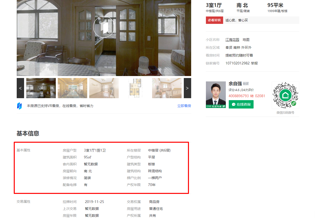 房源列表获取到以后,接着就是要获取房源的详细信息,这次的信息量有点大,解析起来稍有费劲儿: