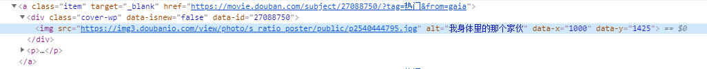 还有一个问题,最后这个 subject_id 的数据从哪里来,好像没见过的,小编凭借自己多年丰富的开发经验,猜测这个数据应该是在页面的上的。我们接着看下这个电影的页面 DOM 结构。