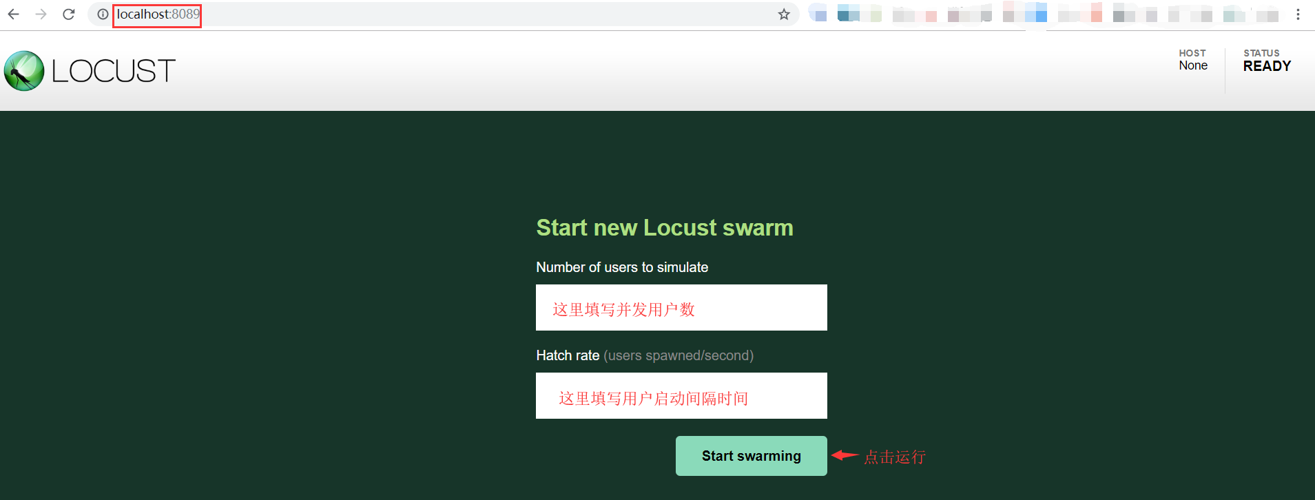 - 默认使用localhost:8089打开