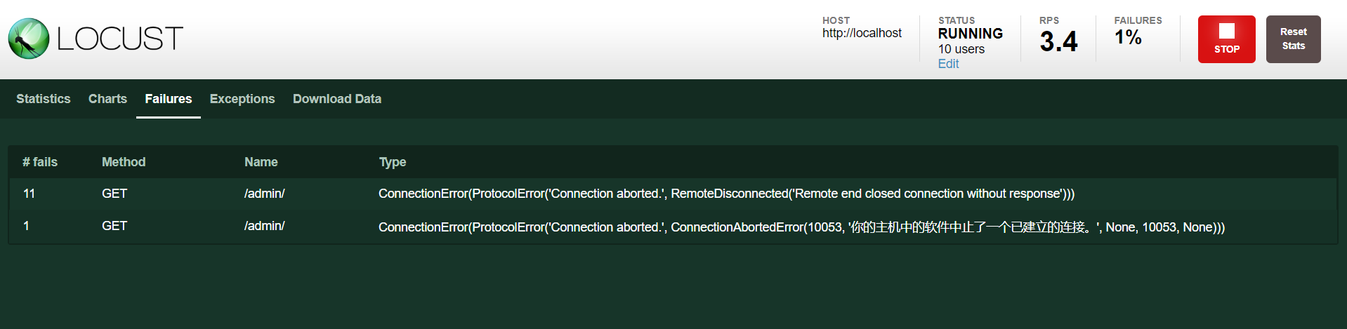 压测失败详情
