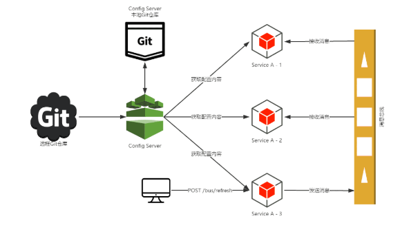 上一章节,我们讲解了分布式配置中心spring cloud config,我们把配置项存放在git或者本地,当我们修改配置时,需要重新启动服务才能生效。但是在生产上,一个服务部署了多台机器,重新启动比较麻烦且会短暂影响用户体验。spring cloud生态在发展,肯定有对应的解决之法,接下来将要讲解的Spring Cloud Bus就是为了解决这一难题而存在的。