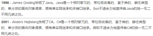 之前一直使用C#开发,最近由于眼馋Java生态环境,并借着工作服务化改造的契机,直接将新项目的开发都转到Java上去。积攒些Java开发经验,应该对.NET开发也会有所启发和益处。 从理论上说,Java和C#语言差别不大,毕竟难听地说,C#就是抄Java出来的。程序语言简史如是介绍这两种语言: