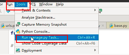 通过pycharm提供的功能来执行manage.py相关的指令: