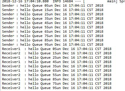 生产者发送消息,这里创建了两个接收消息的消费者。