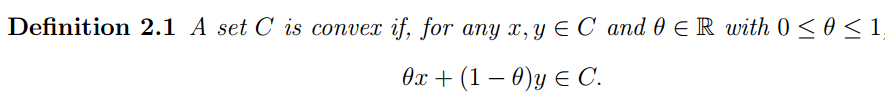 n维实数空间;一些范数约束形式的集合;仿射子空间;凸集的交集;n维半正定矩阵集;这些都可以通过凸集的定义去证明。