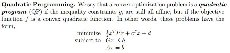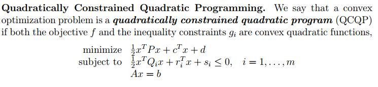 二次约束的二次规划(QCQP):该问题是优化下面的式子: