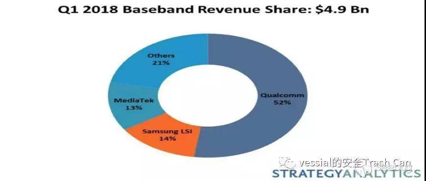 研究对象和目的:高通的基带芯片以及对3GPP定义的对通信协议栈的实现,基带系统是一个非常庞大且复杂的系统,包括软/硬件和通信技术的完美融合,所以具有相关设计能力的芯片产商很少,从2018年基带芯片的市场份额分布,高通是这个领域市场份额做的最大的芯片产商,高通是多个国内手机产商的供应商,例如小米,oppo/vivo等,而华为现在已经有了自己基于海思芯片设计的基带系统,打破了国外基带芯片市场的垄断,现在华为的手机产品都是用的海思基带芯片,不过软件系统还是基于人家的vxworks,而基带系统又是非常封闭的系统,我研究的目的之一就是挖掘里面的一些设计逻辑,结合3GPP的协议的定义来更好的理解整个基带系统的实现,并且深入挖掘里面的攻击面以及如何更好的发现里面的安全问题。