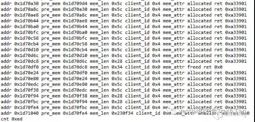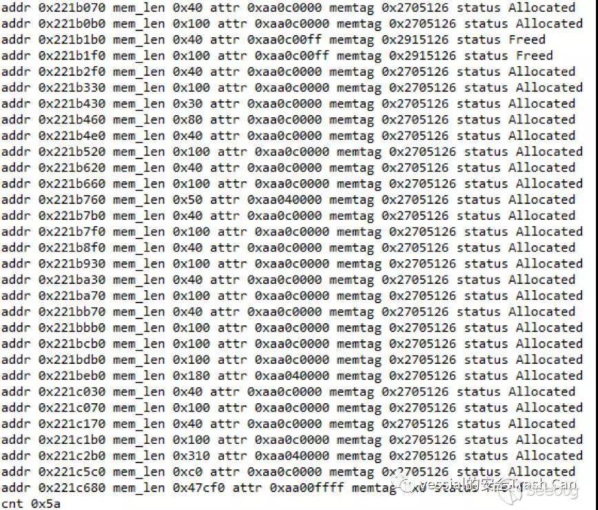 Uint8 mem_flag;//+0x4 内存属性标志,0表示已分配,0xff表示释放掉的内存