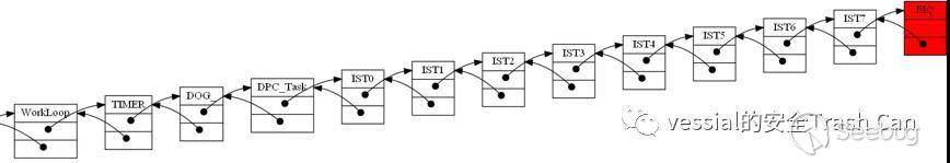 中断发生时,cpu将调度到IST接管中断处理,因为IST的优先级比较高