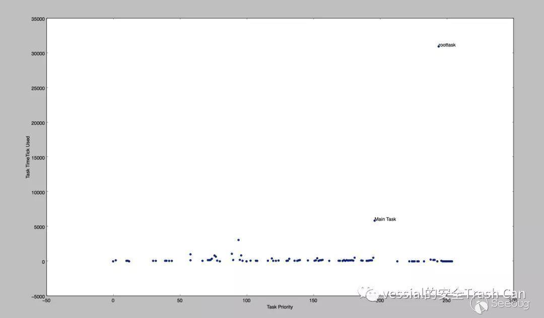 我们可以看到,在系统初始化过程中,各个任务的初始化过程,cpu使用时间都差不太多,因为初始化完了都处于阻塞状态了,只有rootTask和Main Task占有大量的CPU时间,因为rootTask需要负责大量的KTCB切换的通知操作,而且Main Task主动初始化那些应用任务。