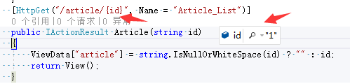 通过响应结果可以知道属性路由首先将URL与路由属性定义的路由模板集([HttpGet("/article/{id}", Name = "Article_List")])进行匹配。一旦某个路由模板匹配,就会应用IActionConstraint约束来确定可以执行的操作。