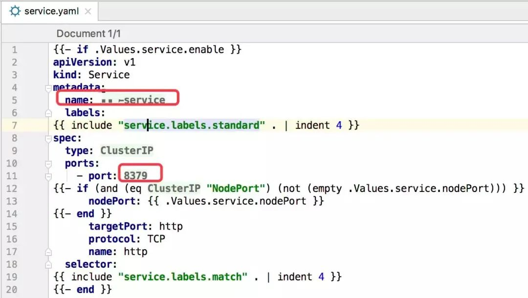参考 https://plugins.jetbrains.com/plugin/10485-kubernetes 支持编辑 Kubernetes 资源文件,如下:可以比较方便的查看yaml中的各项 placeholder 的默认值,且可以方便的链接到value位置。
