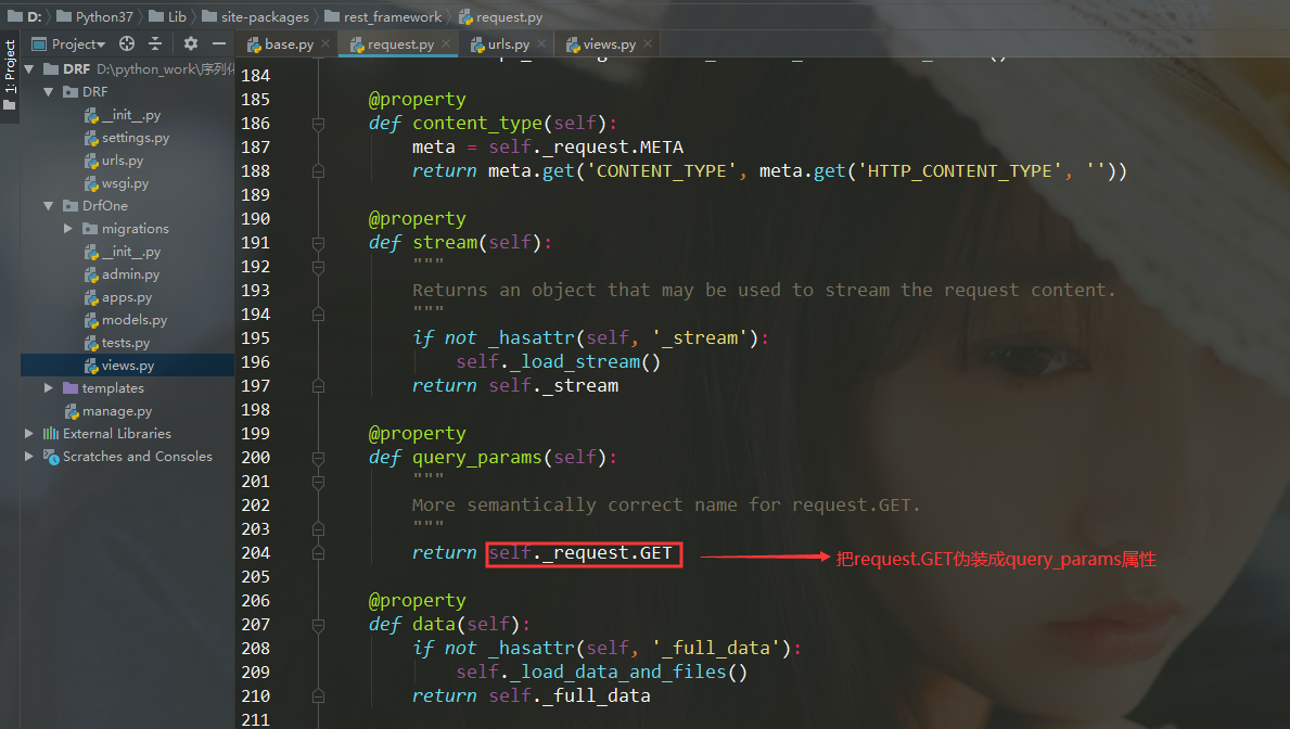 把一些常用的方法重新封装了,如GET方法封装成了query_params,并伪装成属性。