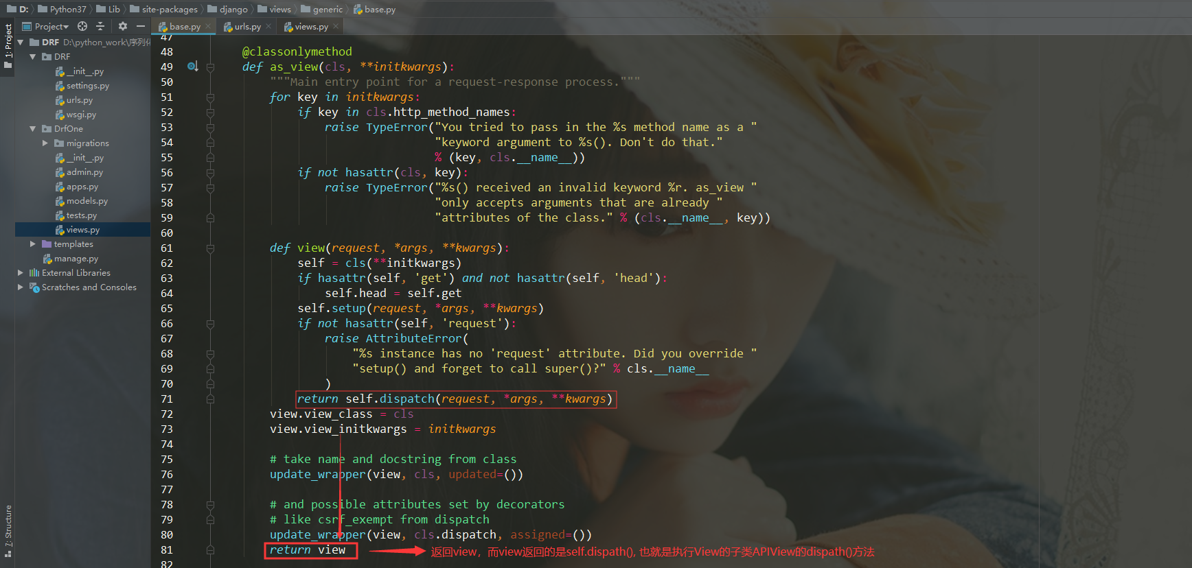 3. as_view() 最终还是执行类 APIView 里的 dispatch() 方法。