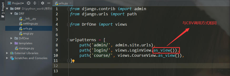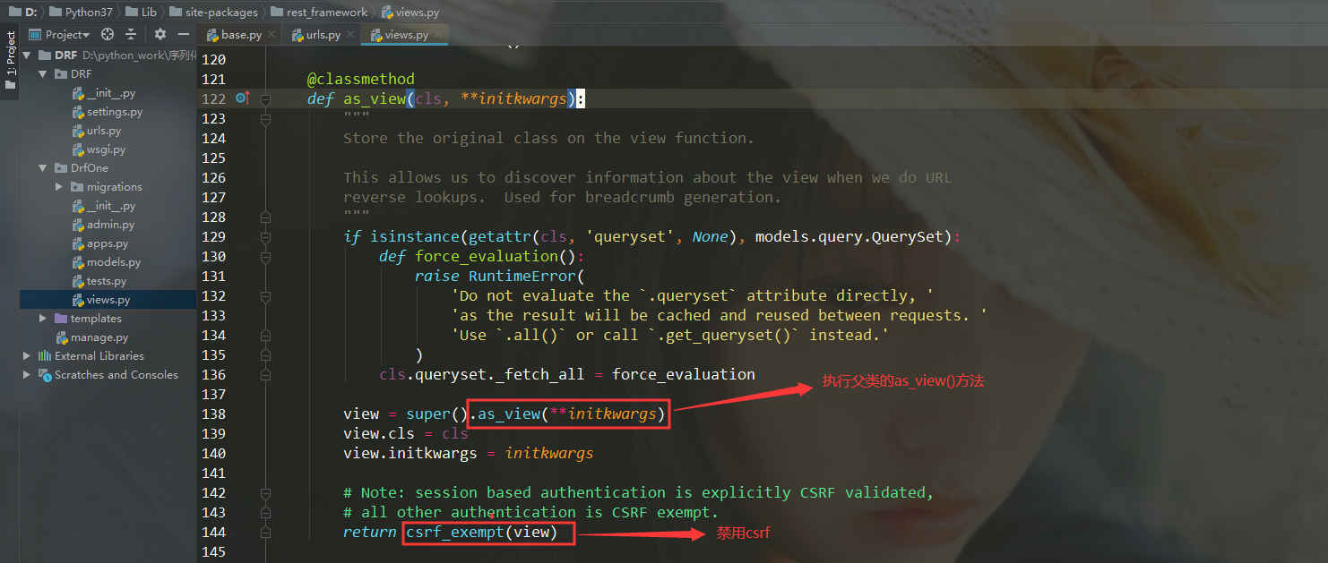 2. 由于视图类 LoginView 类没有 as_view() 方法,所以去父类APIView中找