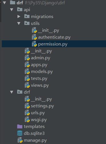 为了更好的管理各个功能组件,在django rest framework 之 认证中我们说到可以将认证类单独的拿出来,放到其他目录下,然后导入到<code>views.py </code>文件中,在权限环节我们亦可以这么做,目录结构就变成这样