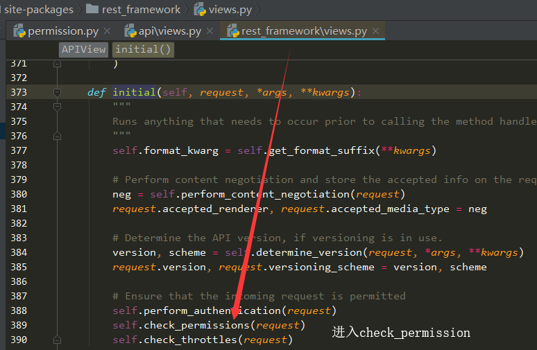 像django rest framework 之 认证一样进入,<code>request</code>的请求流程,进入源码查看具体权限的操作