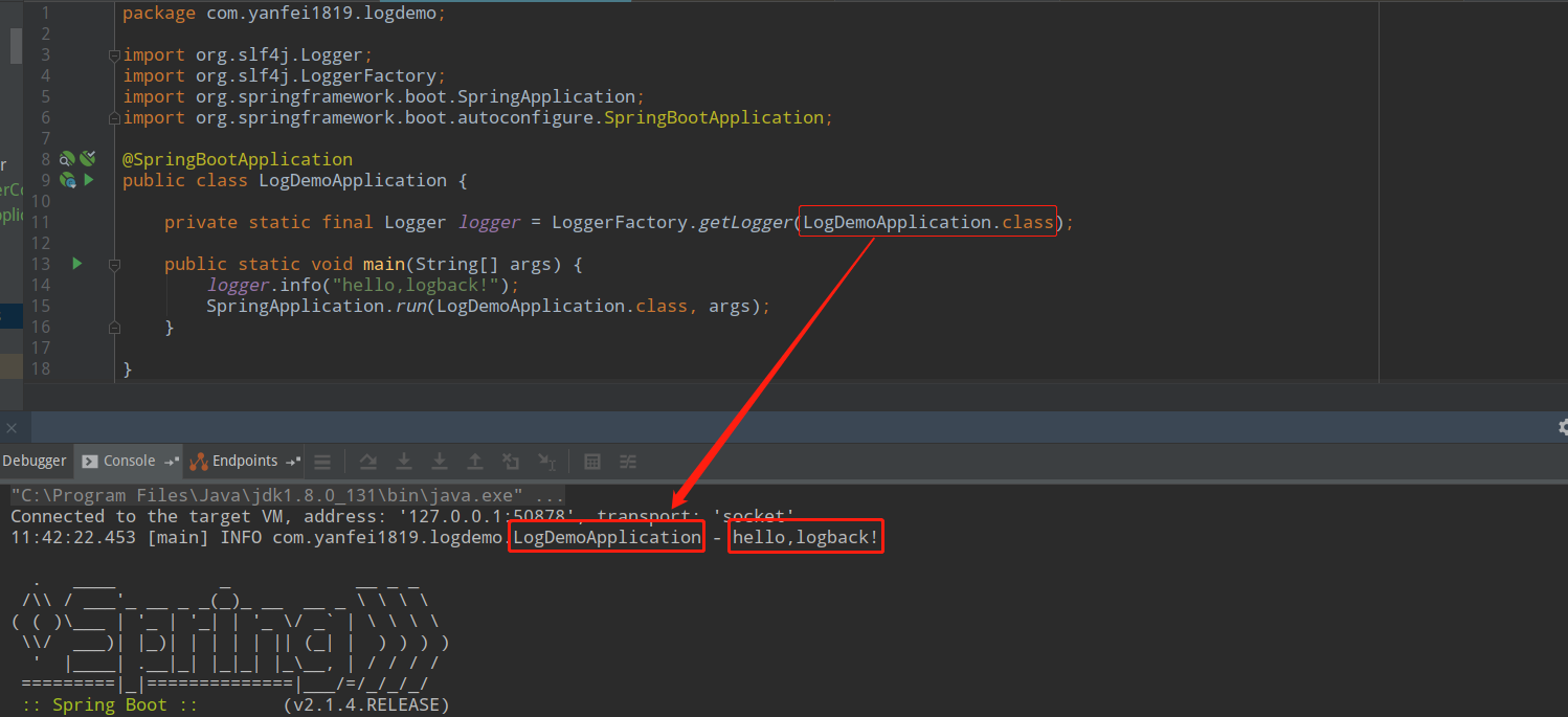 private static final Logger logger = LoggerFactory.getLogger(LogDemoApplication.class);