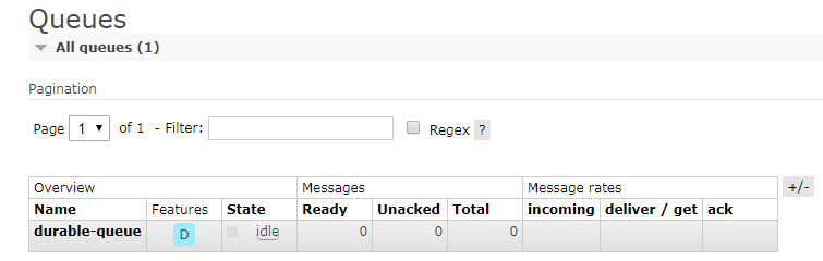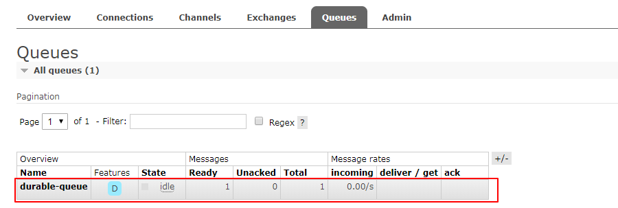 细心的网友可能会发现,虽然现在重启RabbitMQ服务后,Exchange不丢失了,但是队列和消息丢失了,那么如何解决队列不丢失呢?答案也是设置durable参数。