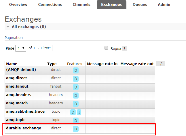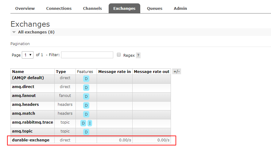 此时运行完代码,然后重启下RabbitMQ服务,会发现Exchange不再丢失: