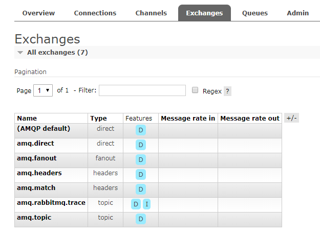 此时重启下RabbitMQ服务,会发现Exchange丢失了:
