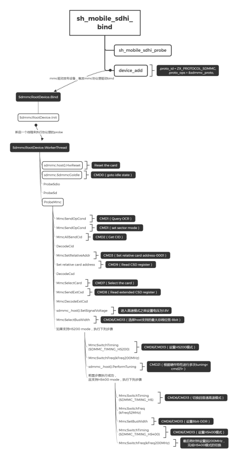 请结合下图及具体代码,来理解fuchsia的MMC协议框架初始化流程。