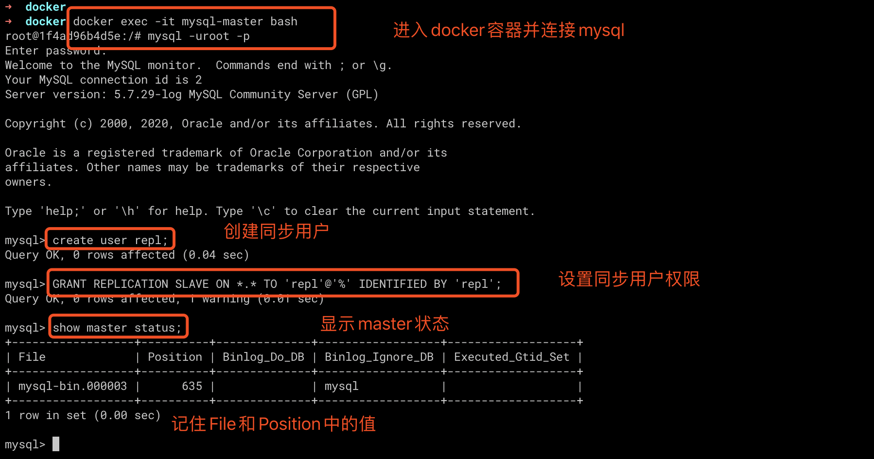 由结果可知,已完成MySQL主从复制环境的搭建。